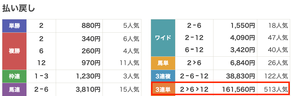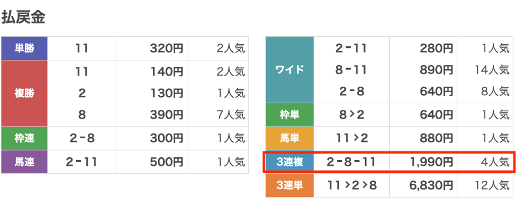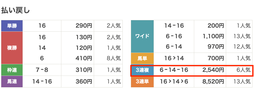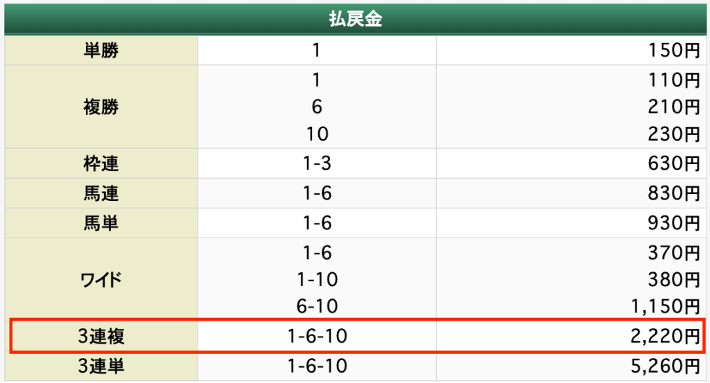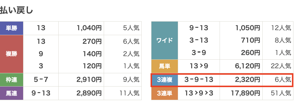 | 払い戻し | 3,020円 |