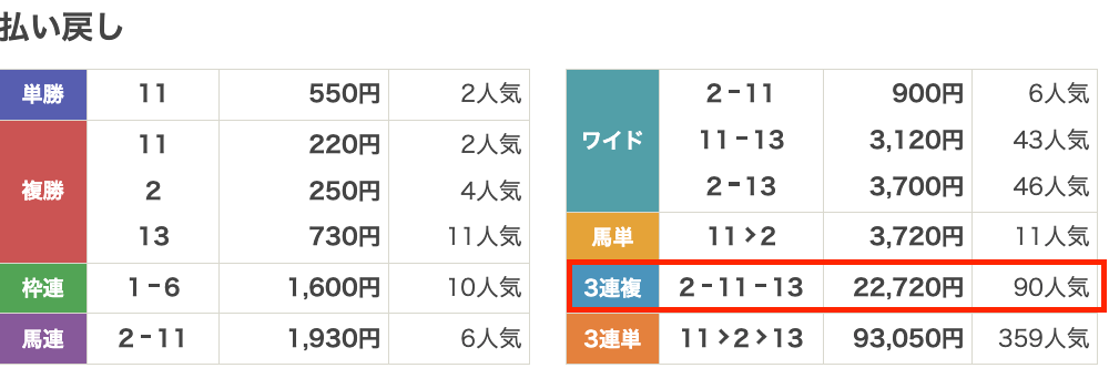 | 券種 | 3連複 |