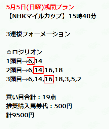 | 馬券代(19点✖️500) | 9,500円 |
