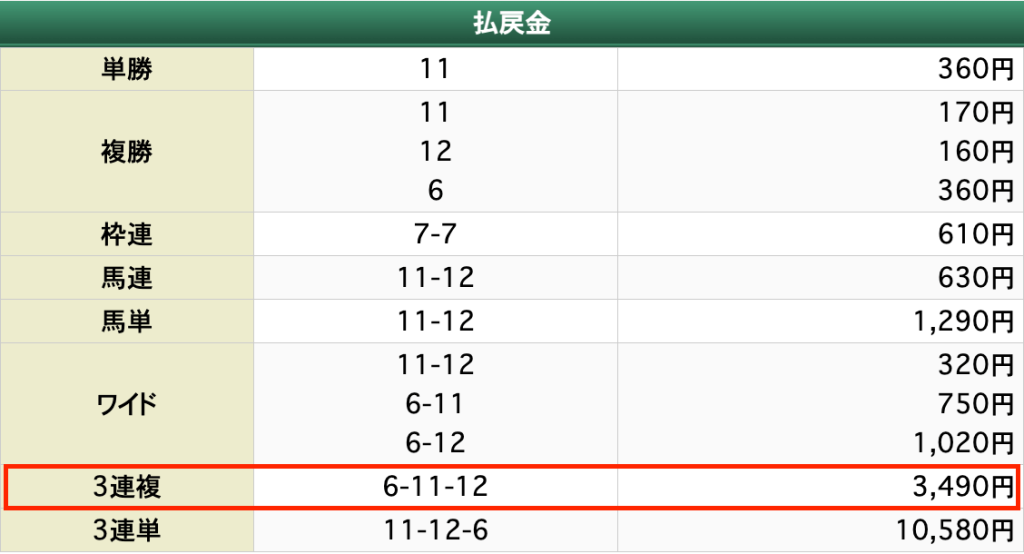 | 払い戻し | 3,490円 |