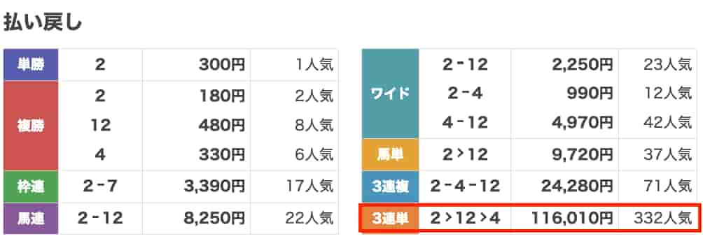 | 払い戻し | 3連単→1,330円 馬連→19,960円 |