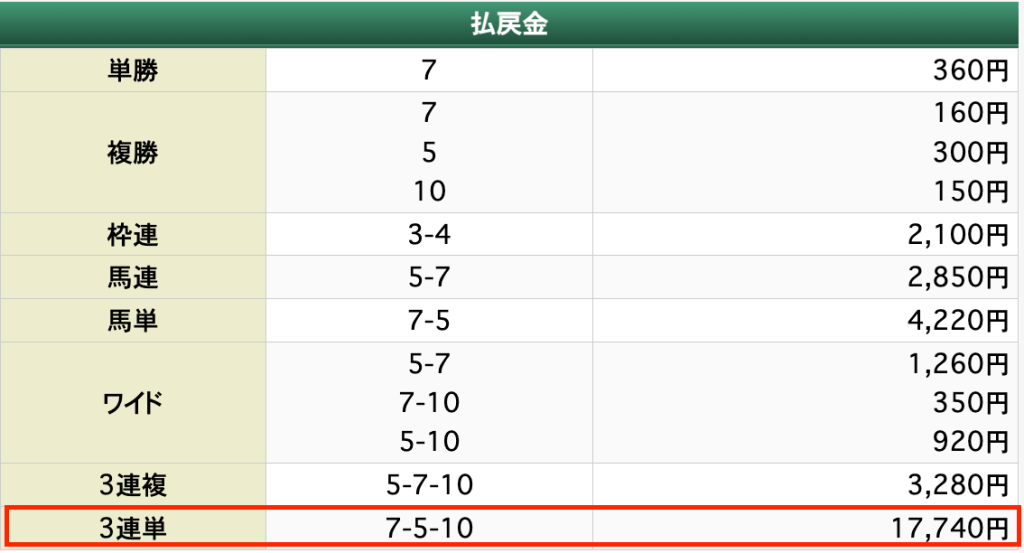 | 払い戻し | 3連単→6,810円 13620 馬連→490円 |