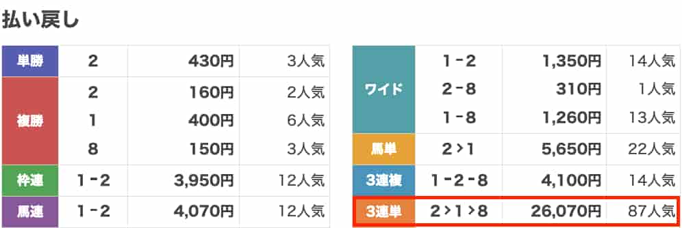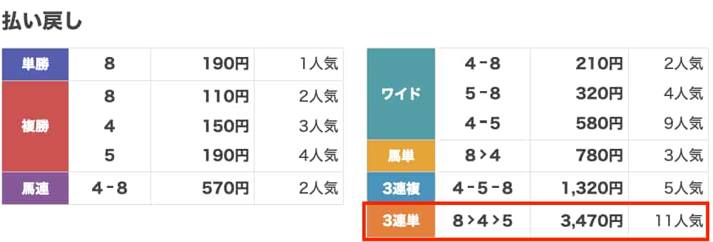 中京8R 3歳以上1勝クラス 三連単配当:100,210円300,630円