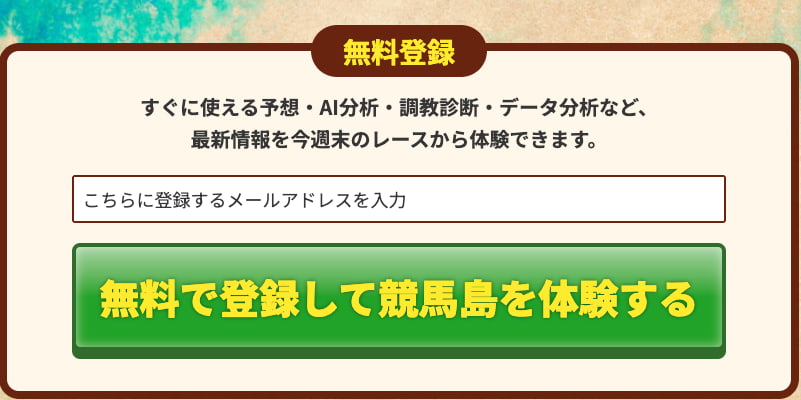 ②『無料で登録して競馬島を体験する』ボタンを押してください。