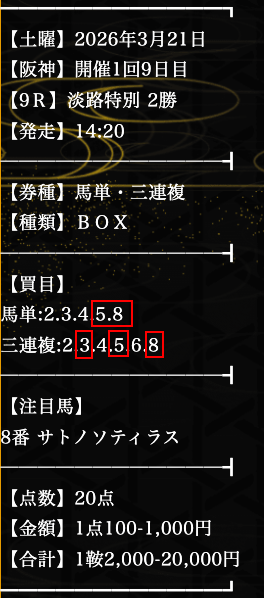 馬単と三連複、バランス良くて自分でも買いやすかったです!