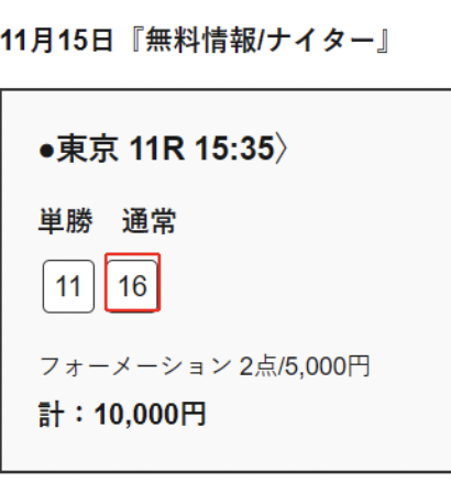 | 対象レース | 東京11R |