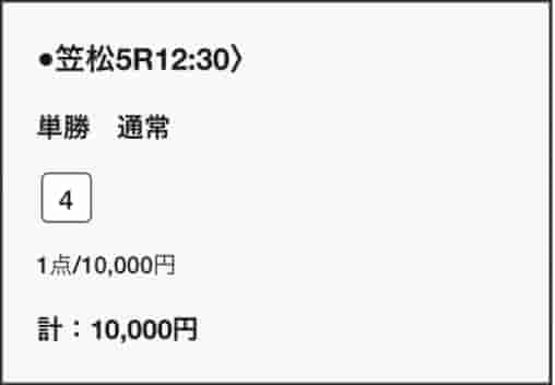 | 馬券代 | 10,000円 |