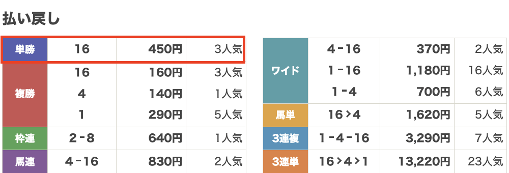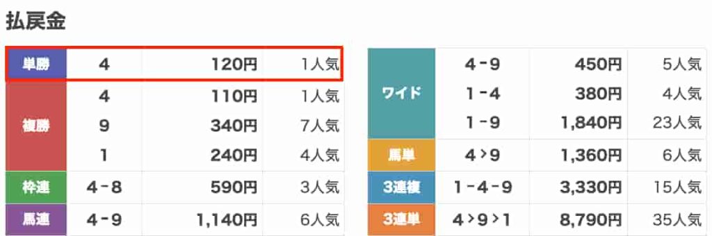 | 券種 | 単勝 |