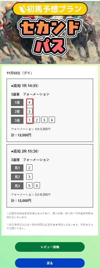 | 対象レース | 高知1R |