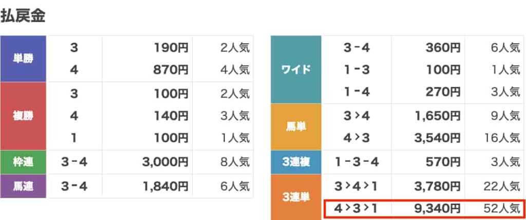 | 払い戻し | 9,340円 |