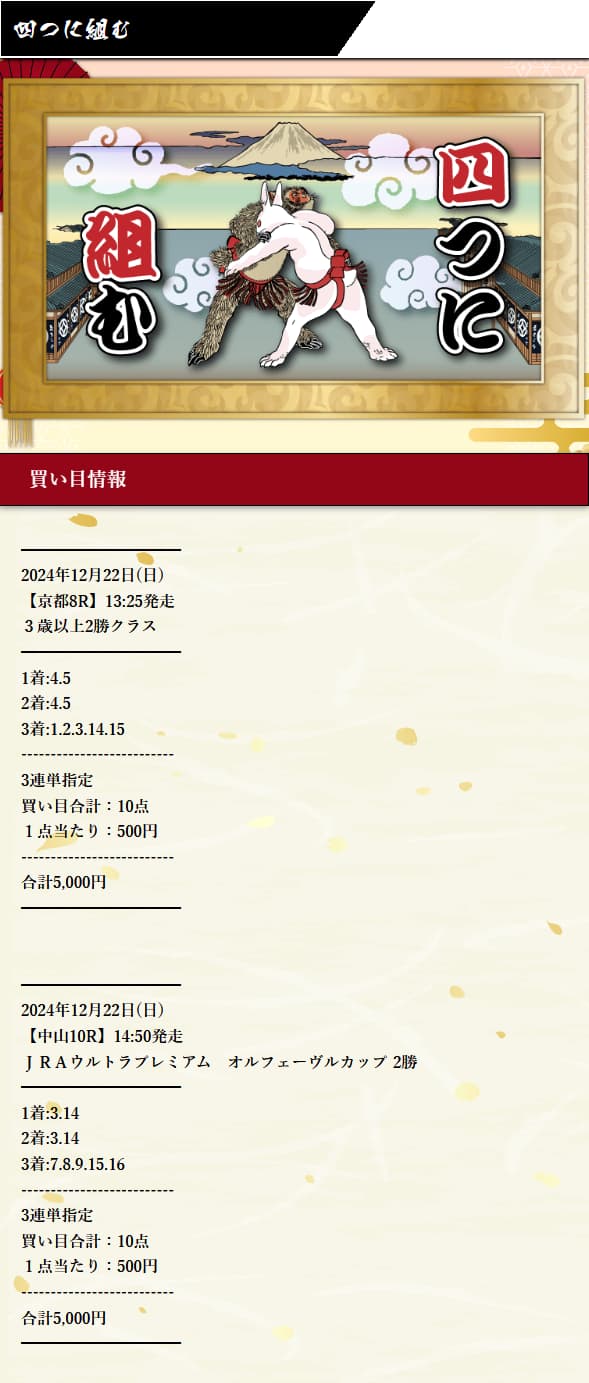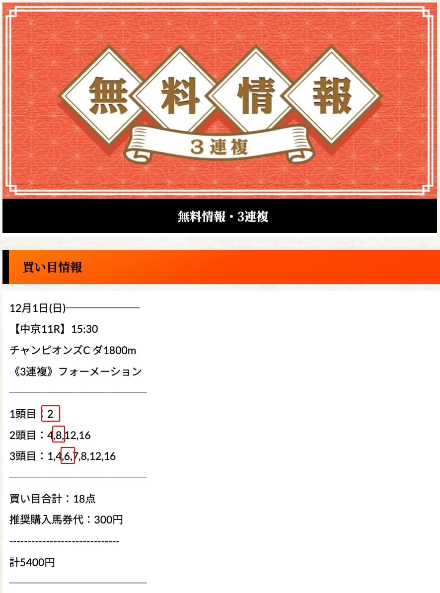 提供される馬が実際に馬券に絡むことが多いので、どの券種で購入しても当たる確率が高いのは本当にすごいです。他のサイトではなかなか見かけないレベルだと思います。しかも無料予想でもしっかり利益が出せるので、とても優秀なサイトです👍