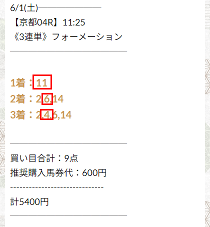 馬券代5,400円