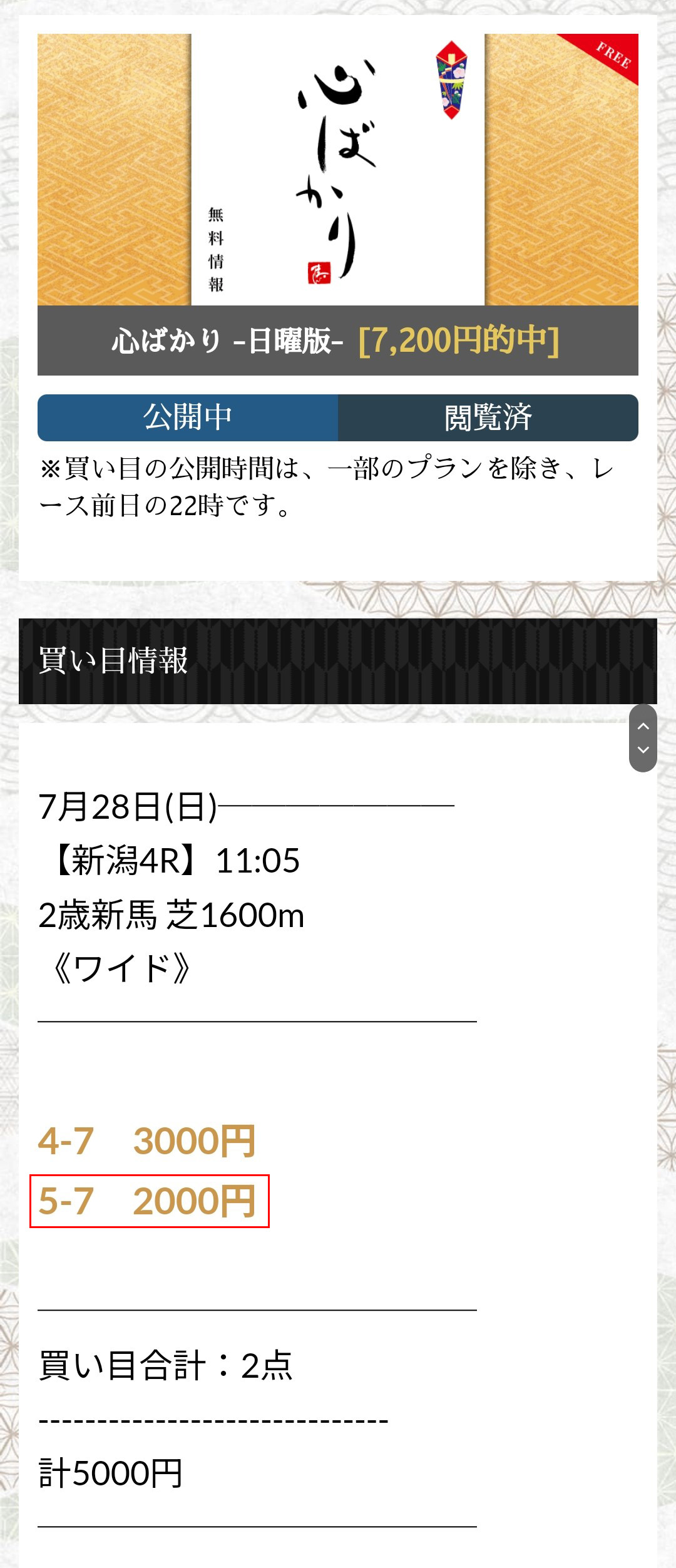 馬券代5,000円