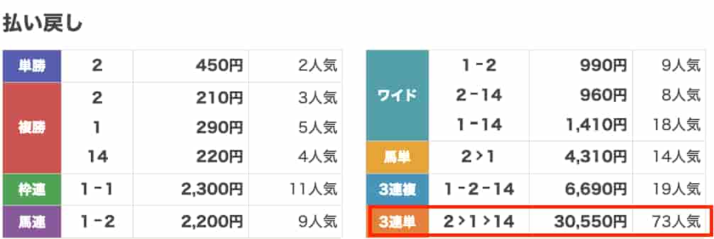 払い戻し30,550円