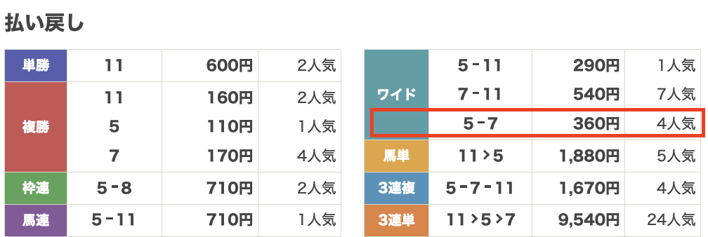 払い戻し360円