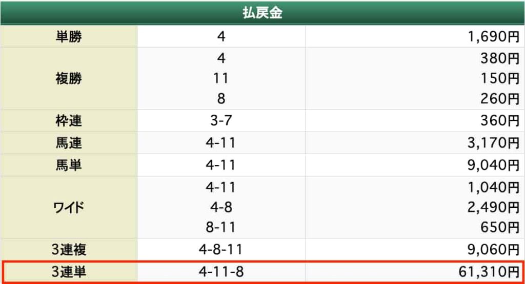 払い戻し61,310円