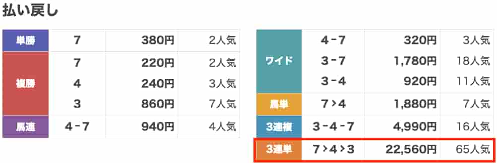 払い戻し22,560円