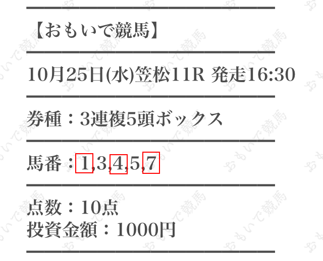 | 馬券代 | 10,000円 |