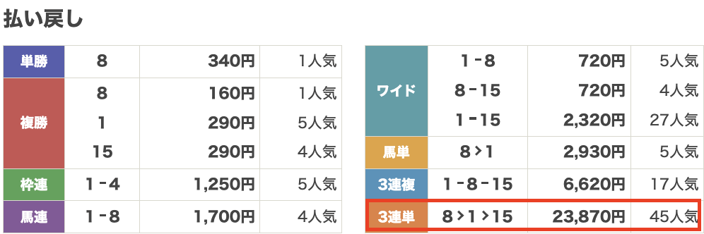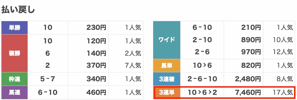 ◎の10番を軸にした形で、あとは順当にハマった印象です。
